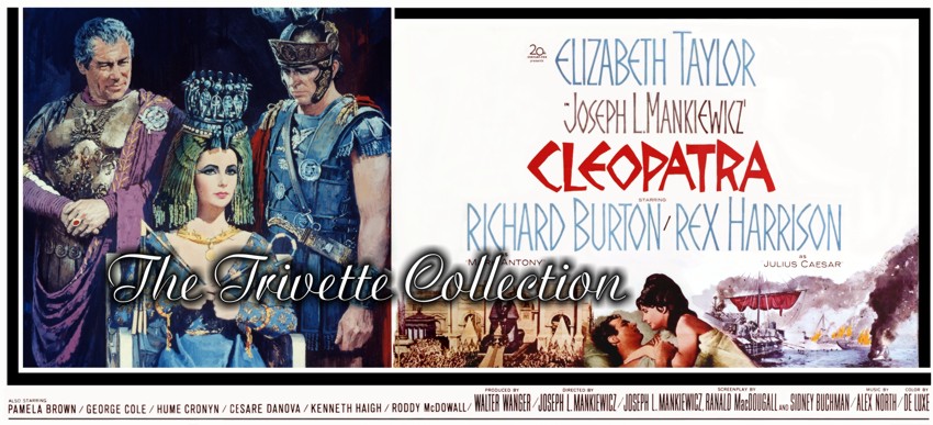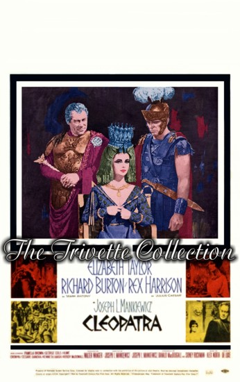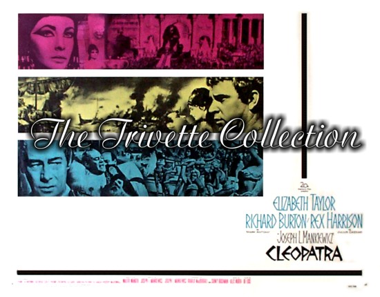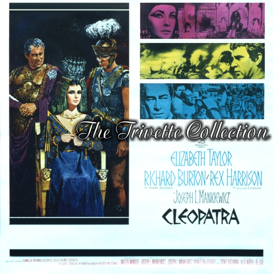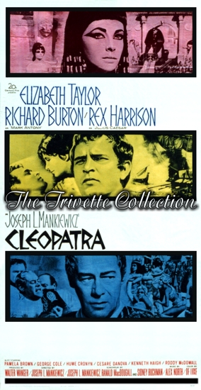 Because of the Taylor/Burton scandal at the time, areas of the country more sensitive to the "illicit" nature of their romance, had the option to use lobby cards that ever-so-slightly downplayed Taylor and Burton as a couple, and focused more on the spectacle (the pink set). The blue set shows Taylor and Burton a bit more prominently and closer together. The differences are so minor, one wonders what was the point? Ah.....the 60's!